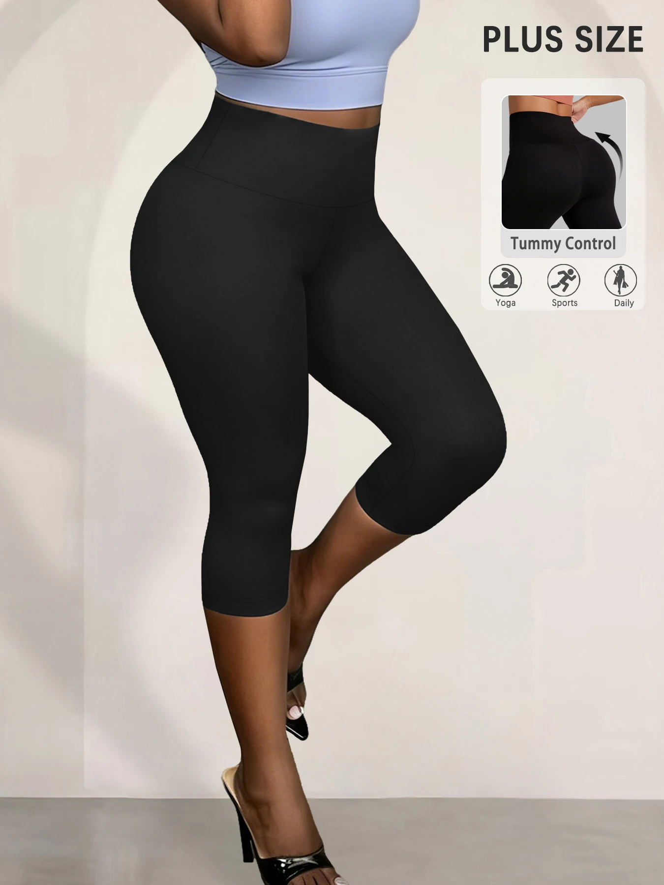 Plus Size Leggings for Women Super soft High Waisted Tummy Control Yoga Capri Pants No See Through Workout Running Leggings